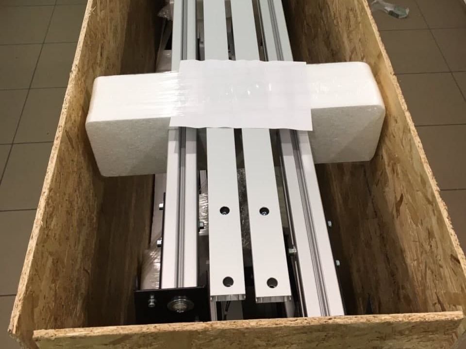 В таком виде мы отправляем наше оборудование клиентам из других стран. Станок с рабочим полем 1100 х 1200 мм и длиной струны 3000мм с минимальной разборкой помещается в ящик 1500 х 500 х 1000мм. Если же станок предназначен для клиентов, которые забирают его из нашей мастерской самостоятельно, необходимость в ящике отпадает, и они его транспортируют в виде пакета, показанного на первой фотографии. Если этот пакет расположить горизонтально, тогда эту модель можно транспортировать в универсале или кроссовере со сложенным задним рядом сидений.